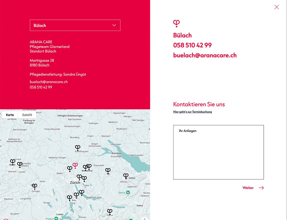Mit Strapi als zentralem Headless-CMS und einem modernen React-Frontend verfügt Arana Care über eine flexible und skalierbare Digitalplattform. Inhalte, Standorte und Formulare werden zentral im CMS gesteuert, während React eine schnelle, interaktive Nutzererfahrung ermöglicht – inklusive komplexer Logiken wie PLZ-basierter Kantonszuordnung oder dynamischen Kursanmeldungen.