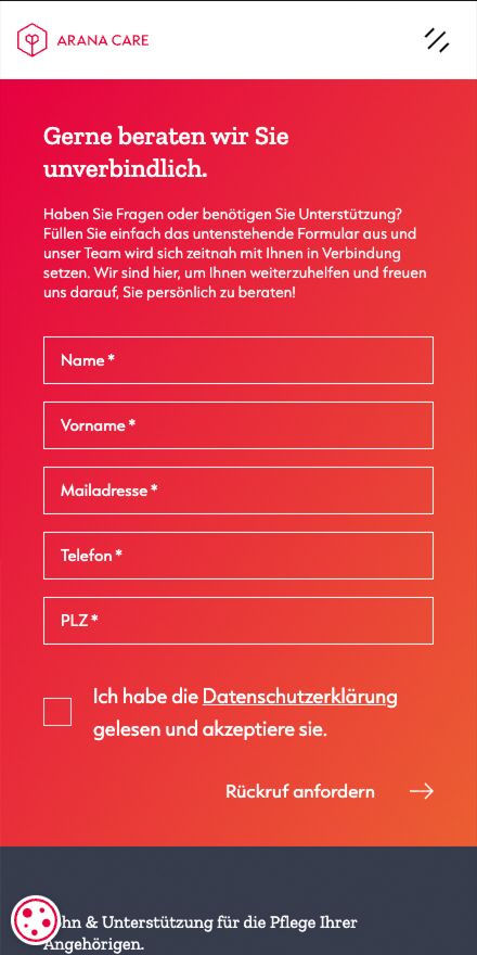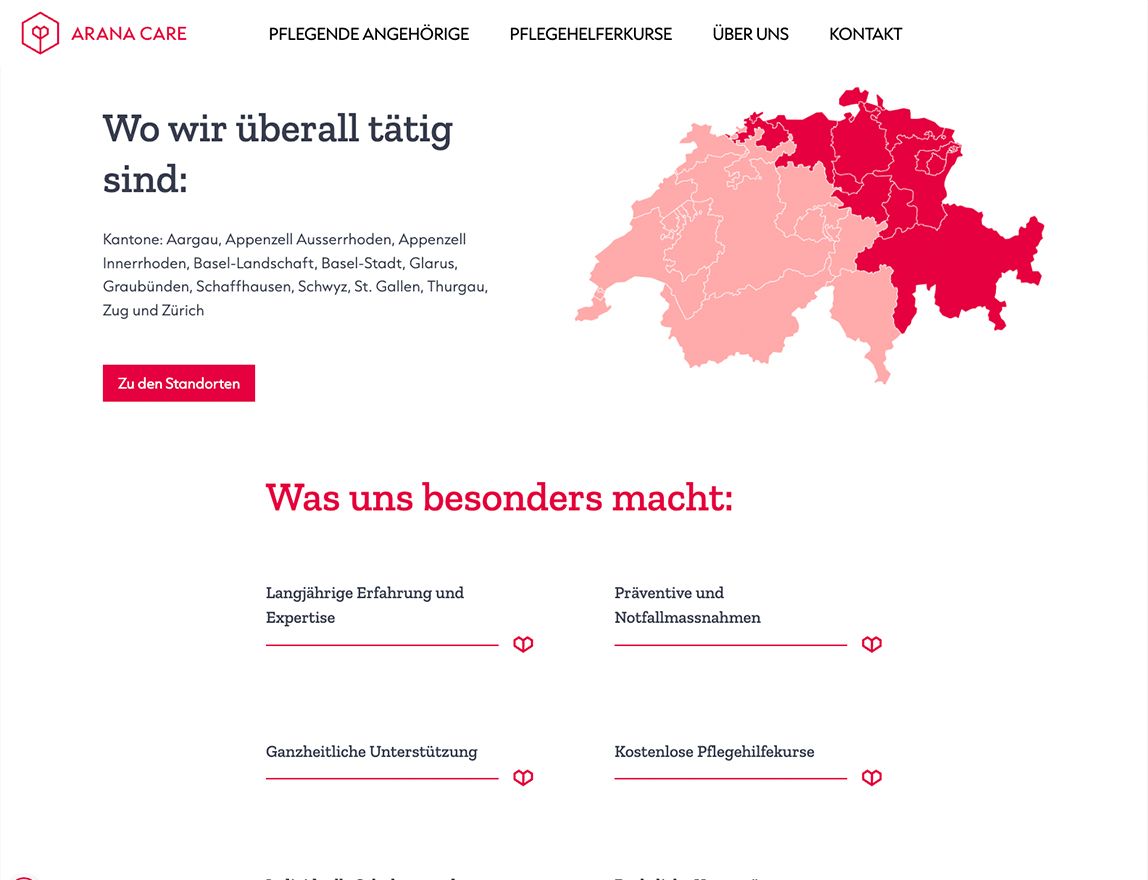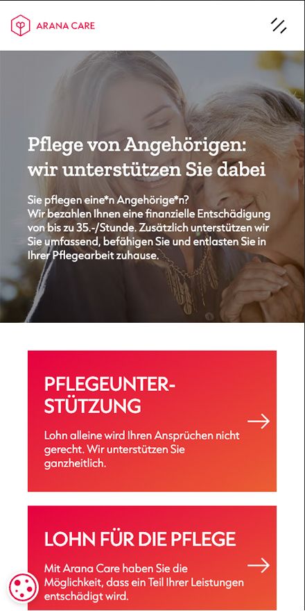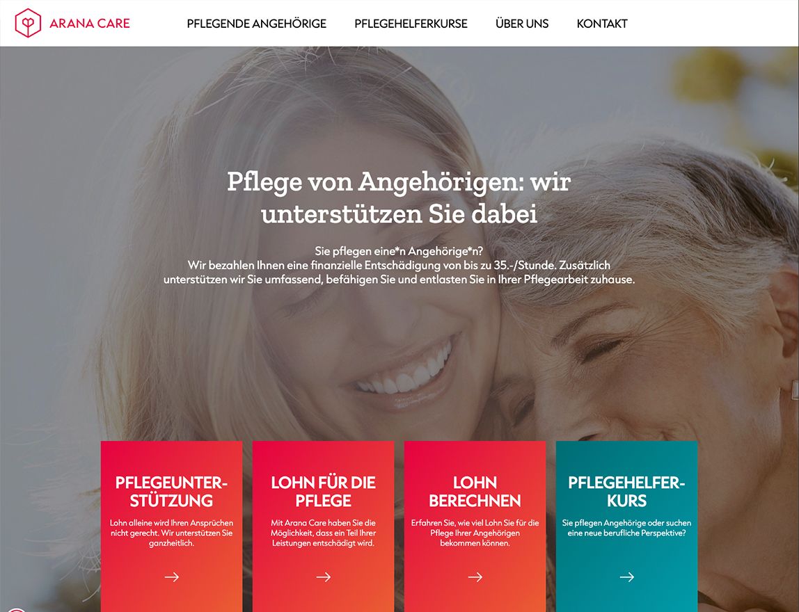 Für Arana Care haben wir eine maßgeschneiderte digitale Plattform entwickelt, die Menschen, die ihre Angehörigen zuhause pflegen, umfassend unterstützt. Arana Care ist eine schweizweit einzigartige Organisation, die pflegende Angehörige nicht nur entlohnt, sondern ihnen durch ein ganzheitliches Care Management Stabilität, Orientierung und praktische Hilfe im Pflegealltag bietet – und das alles über eine zentrale digitale Schnittstelle.