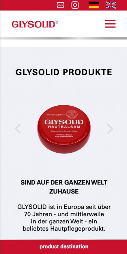 Glysolid steht seit Jahrzehnten für intensive Hautpflege mit zuverlässigem Schutz. Die Marke vereint bewährte Rezepturen mit hochwertigen Inhaltsstoffen, die selbst beanspruchte Haut nachhaltig pflegen und stärken. Auf der neuen Website wird dieser Anspruch sichtbar: klar, modern und mit Fokus auf die schützende Qualität, die Glysolid so einzigartig macht.