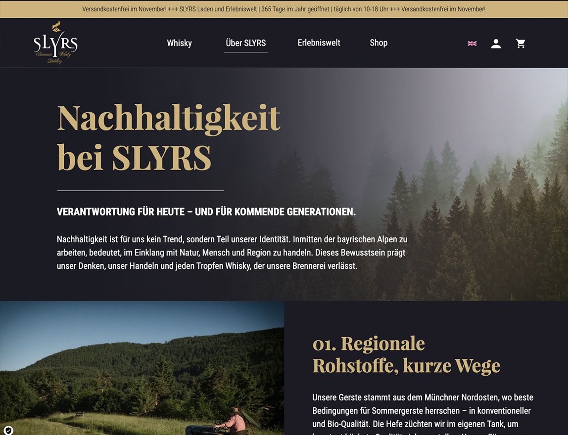 Die Website wird so zu einem Ort, an dem Tradition, Qualität und Genuss nicht nur sichtbar, sondern spürbar werden. Sie stärkt die emotionale Verbindung zwischen Marke und Besucher und macht die besondere Welt von SLYRS digital zugänglich – persönlich, hochwertig und immersiv.