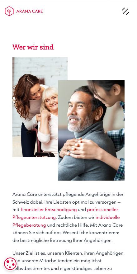 Für Arana Care haben wir eine maßgeschneiderte digitale Plattform entwickelt, die Menschen, die ihre Angehörigen zuhause pflegen, umfassend unterstützt. Arana Care ist eine schweizweit einzigartige Organisation, die pflegende Angehörige nicht nur entlohnt, sondern ihnen durch ein ganzheitliches Care Management Stabilität, Orientierung und praktische Hilfe im Pflegealltag bietet – und das alles über eine zentrale digitale Schnittstelle.